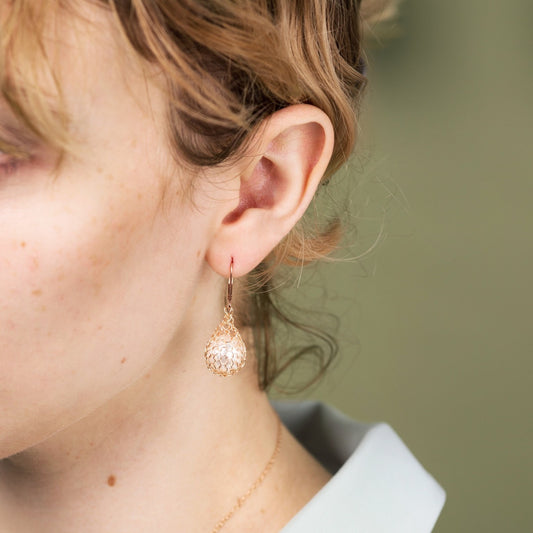 Boucles d'oreilles Gouttes Perle blanche et Or Rose