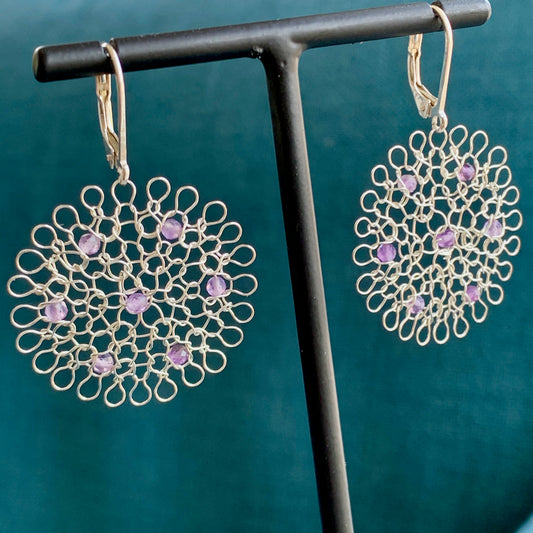 Boucles d'oreilles Rosaces Argent et Améthystes