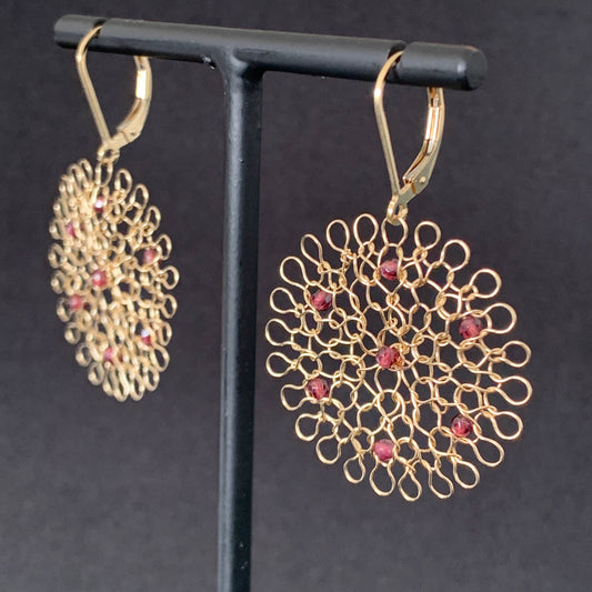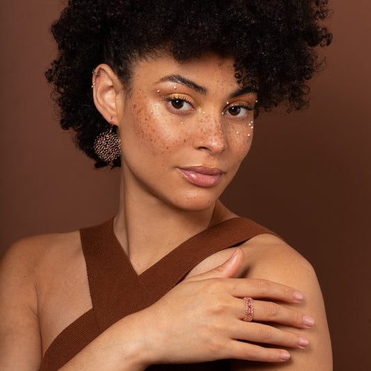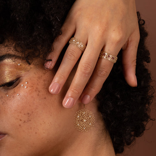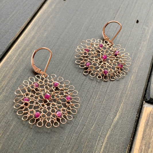 Boucles d'oreilles Rosaces Or Rose et Rubis