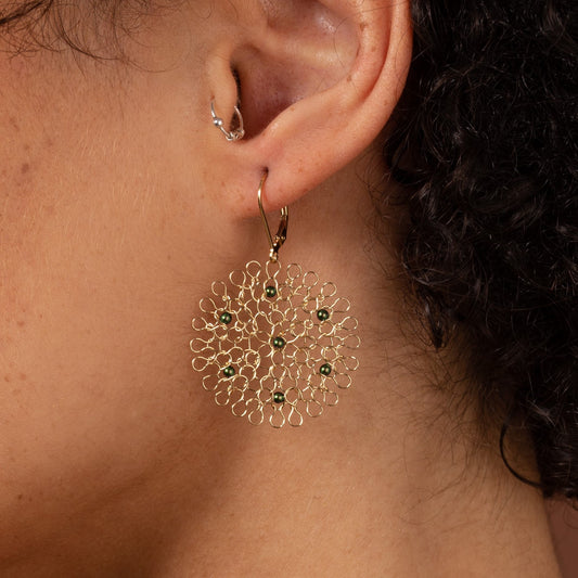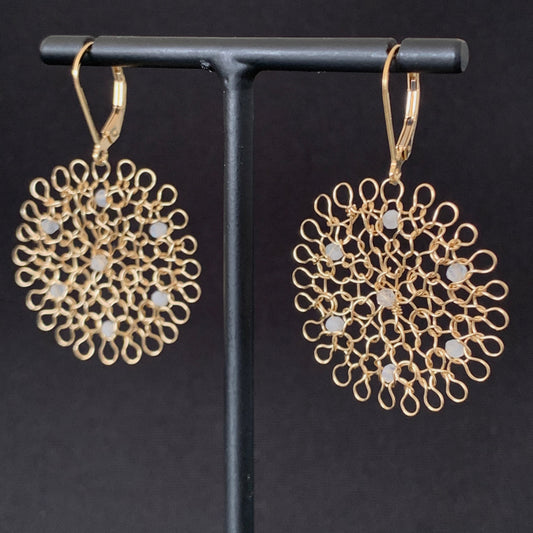 Boucles d'oreilles Rosaces Or et Pierres de Lune