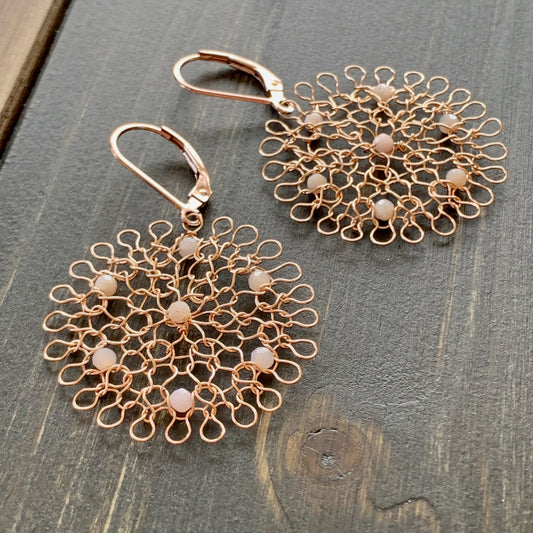 Boucles d'oreilles Rosaces Or Rose et Opales roses