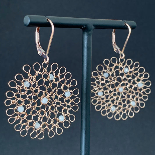 Boucles d'oreilles Rosaces Or Rose et Pierres de Lune