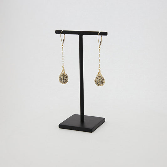 Boucles d'oreilles Gouttelettes Perle noire et Or