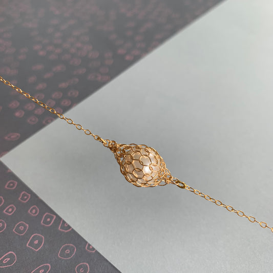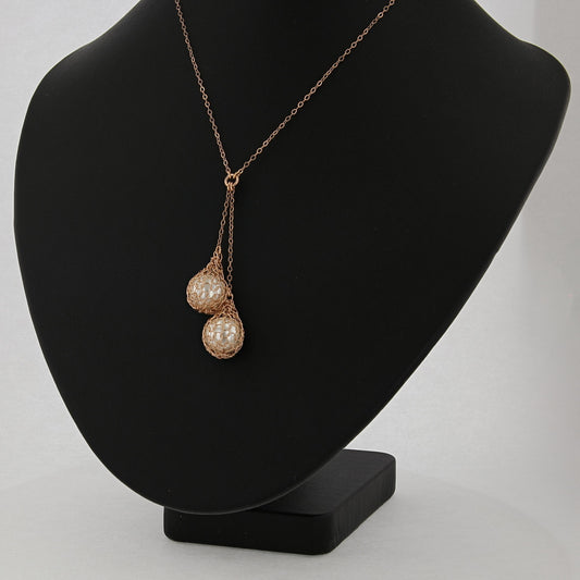 Collier Gouttelettes Perle blanche, noire et Or Rose
